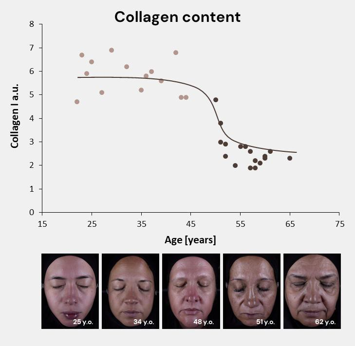 Figure 3: As collagen levels decrease over time, signs of skin aging appear [5] Images taken in dsm-firmenich 2024 clinical study.